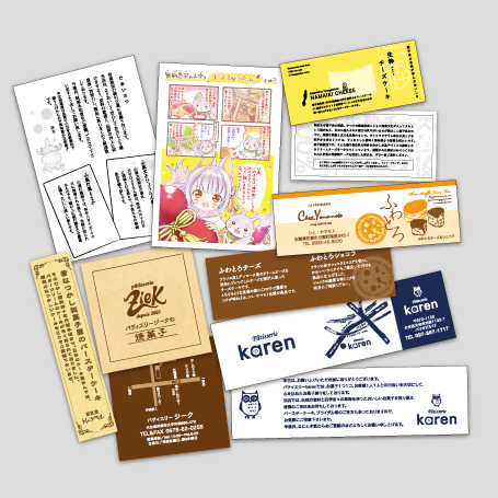 栞を一枚添えることで商品のもつ魅力をよりこまかく伝えることができワンランク上のイメージを印象付けることができます。販売者の情報はもちろんのこと、商品に対する思いや情熱を添えるのも栞にできる効果のひとつです。